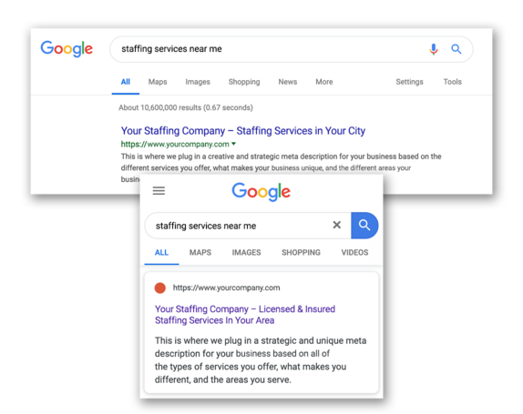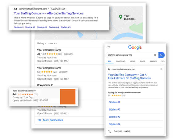 Utilizing Facebook’s advertising platform, we can tap into many different audiences of people on Facebook and Instagram. Social Media advertising has the unique ability to not only target the right Staffing customer in the area of your choice, but it also allows social interaction between a customer and the Staffing Business. People can comment, like, and share your post with other friends and family. Facebook also has the ability to use video and image ads to engage potential customers. Your customers are Facebook and Instagram, and we’ll use these platforms to reach them directly with your messaging.